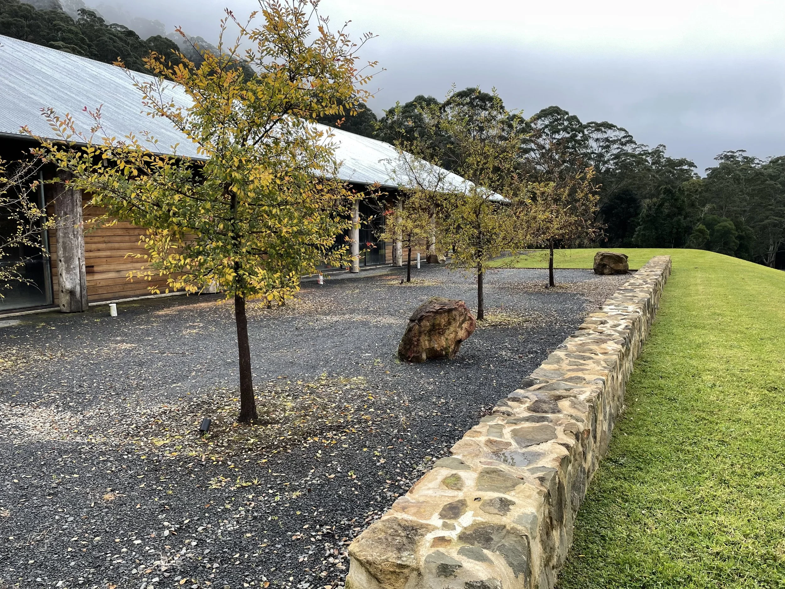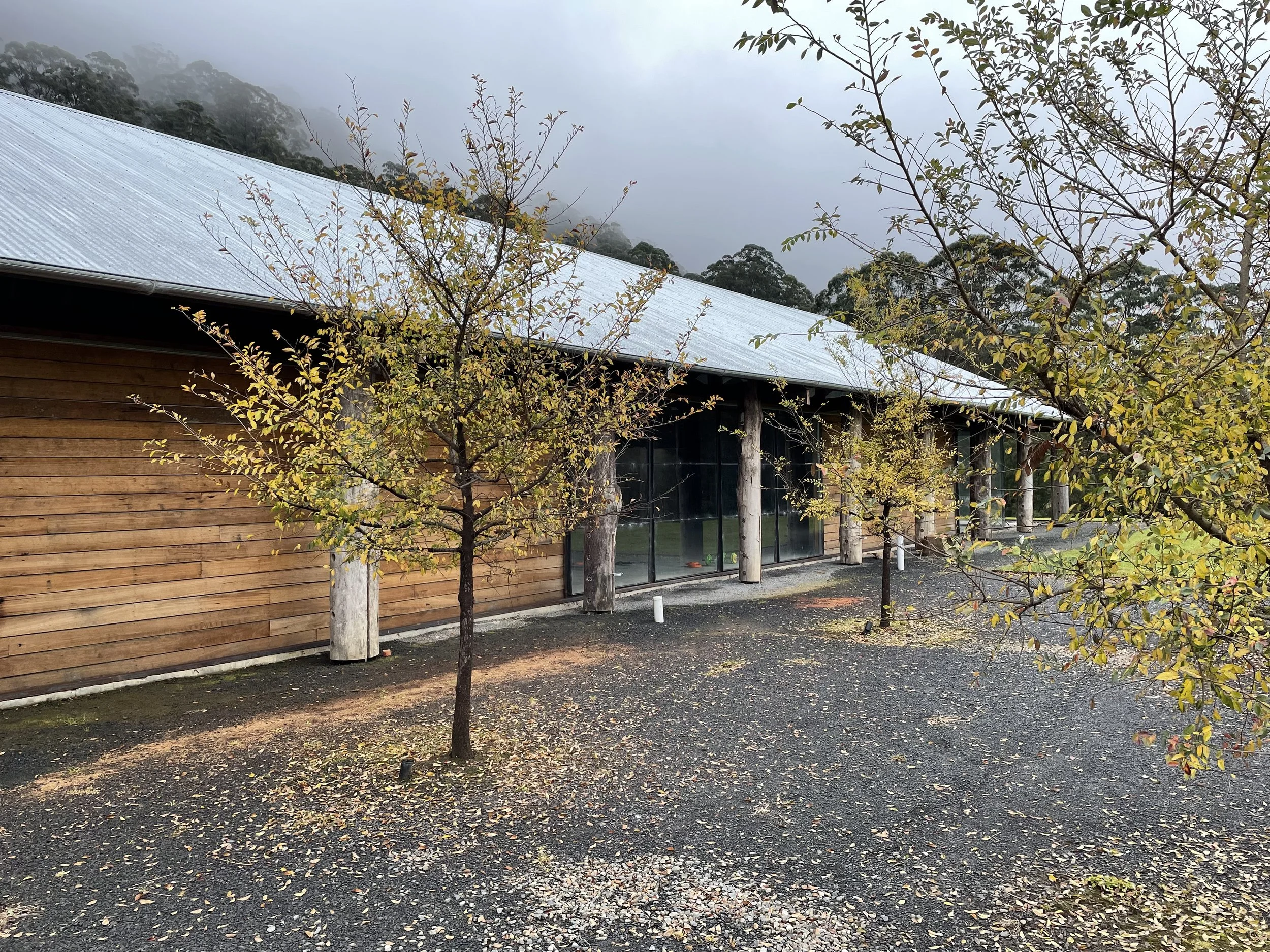 Constructed primarily from indigenous hardwood felled and milled on the site, with the trusses and steel doors locally fabricated, the building presents an enviably small carbon footprint. It also provides for its own power, water and sewer services.