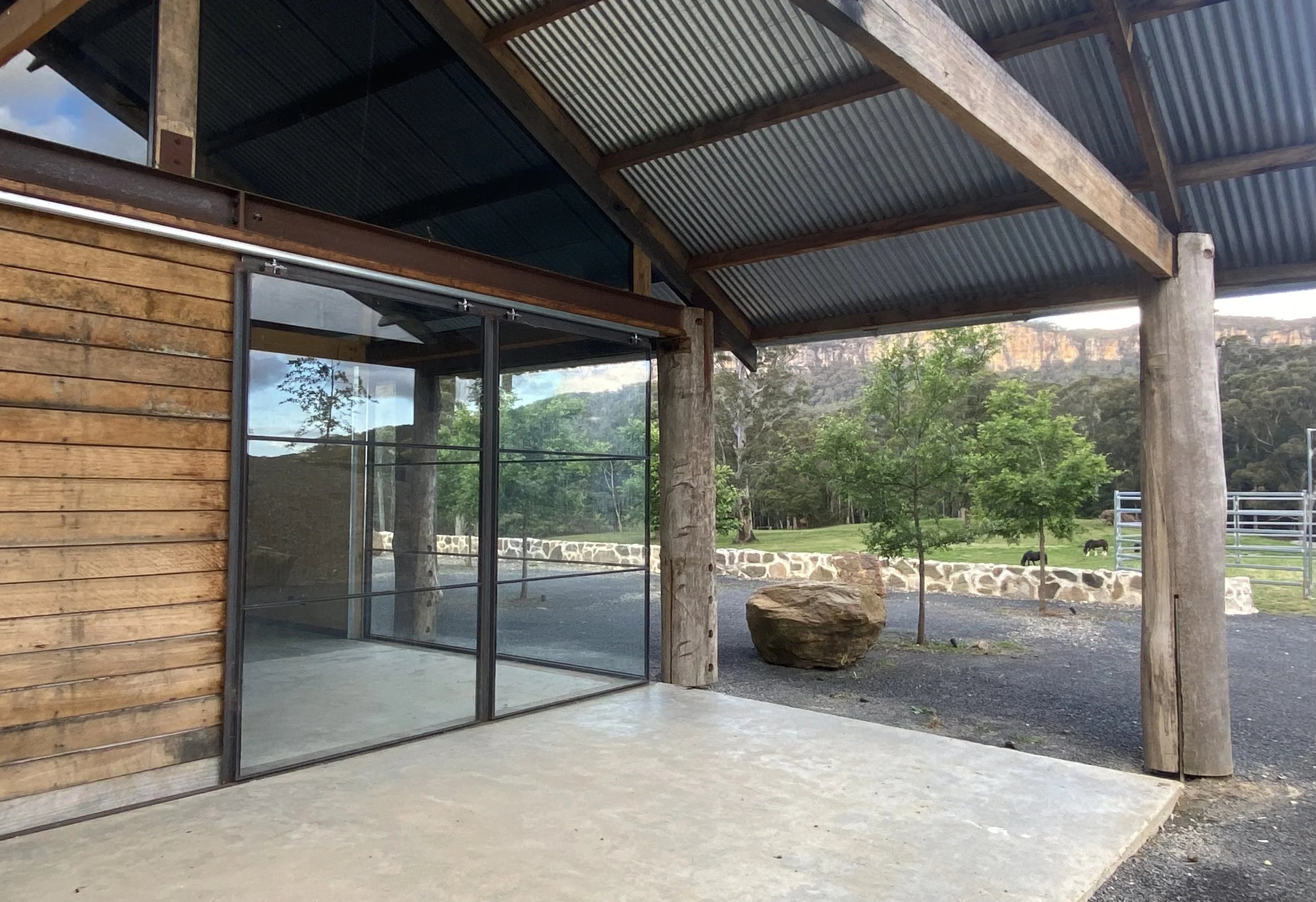 Archies is a very large rural shed commissioned by our ongoing Kangaroo Valley clients. The shed was required to serve as both a venue for occasional functions, as well as an equestrian activities centre and to serve the day to day property needs.